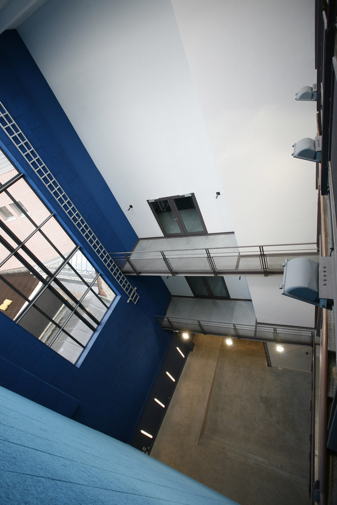 Le bâtiment est composé de 3 volumes distincts : le corps de logis (à rue), un patio et la salle de spectacle de 450 places. Notre objectif a été de relier ces trois espaces par une rampe continue afin de lier tous les niveaux et espaces entre eux. Cette configuration est également propice au développement de la culture maghrébine, fortement influencée par la parole et le cinéma. Ainsi, la salle de spectacle offre et dans ses différentes configurations, l’opportunité d’espaces très intimes ou bien spectaculaires.