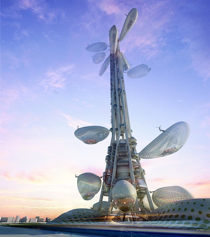 La tour devrait faire 390 mètres de haut et, selon l’architecte « inspiré par la feuille, la forme de l’île de Taiwan, et d’autres symboles taïwanais ». Huit ascenseurs zeppelin-plate-formes d’observation de la tour et « collés » sur des rails à champ électromagnétiques en font de cette tour un projet…. Comme on en a vu au début du 20ème siècle avec l’essor des zeppelins entre l’Europe et les Etats-Unis.
