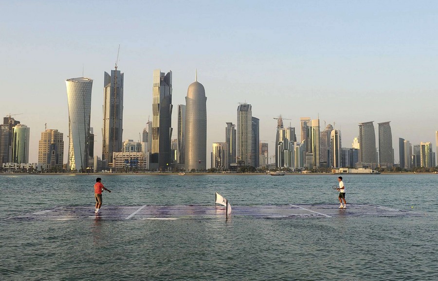 Je ne sais pas ce qui est le plus fou : soit l’??dification de ce nouveau Manhattan, soit les deux joueurs de tennis qui se font remarquer devant la photo… ?? vous de juger