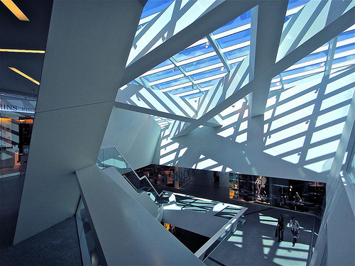 Loin de moi de remettre en cause la qualité de ces architectes : le travail de Liebeskind à Berlin et à NY est remarquable… par contre, son talent s’exprime étonnement de façon générique dès qu’il quitte ces deux villes où il vit ou a vécu. L’exemple des photos du centre commercial de WESTSIDE situé en périphérie de Berne et inauguré en 2008 est significatif en ce sens.