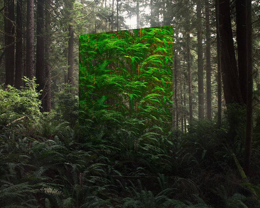 //_PATH explores these ideas through digital photography, collage, 3D rendering, and primitive 3D scanning technology. Within the images I focus on using strict geometric and synthetic form to contrast against the landscape in which they are manifested; a comparison of language. The natural landscape can be seen as the most ancient of symbolic languages: it is the original set of symbols that birthed all of modern language; it is the original text. Focusing on the landscape and our modern digital language, I seek to understand our aggressive capture and digitization of our surroundings through very basic use of pure color and the native tools of contemporary digital imaging that we use to create meaning and manipulation in mass media. »