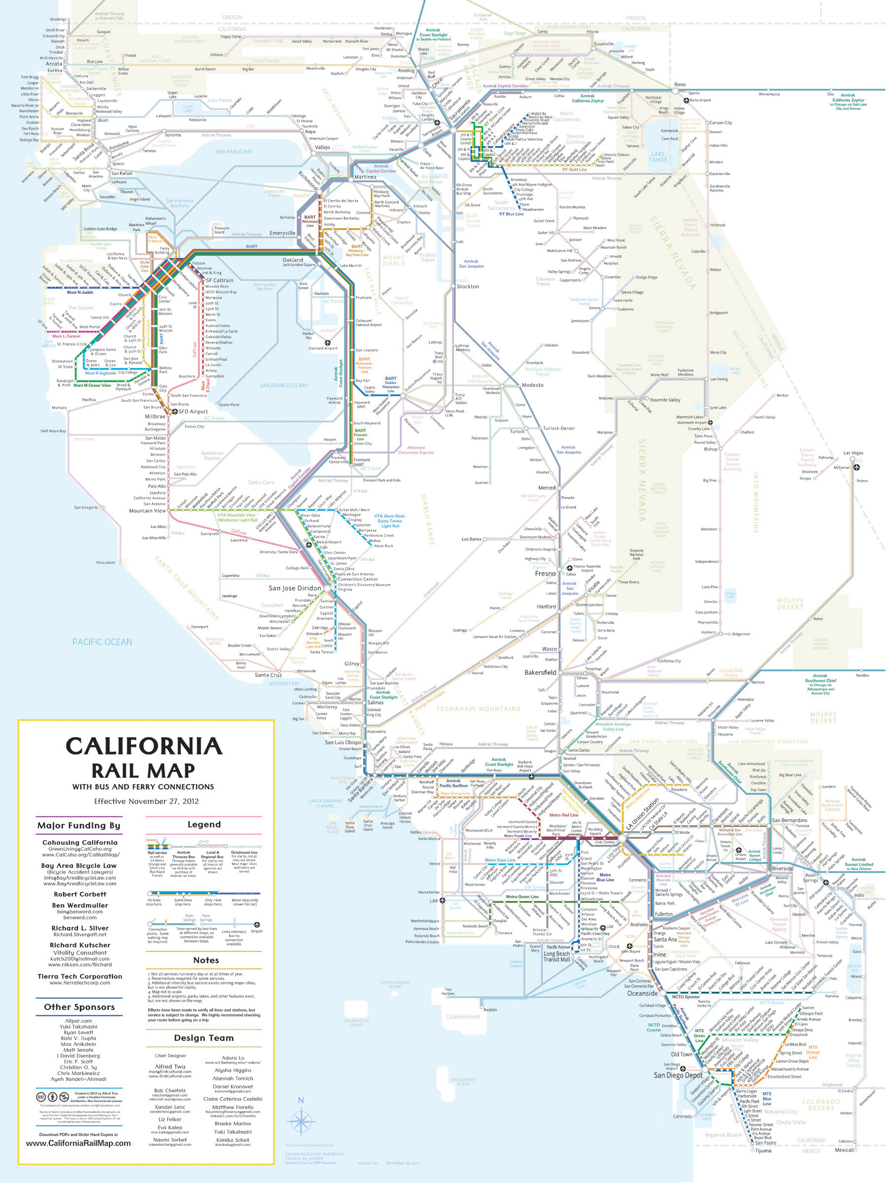3. cette nouvelle forme de lecture cartographique a toutefois ouvert la porte à une lecture de carte à plus grande échelle. C’est le car ici avec cette carte des transports publics en Californie et réalisé par First Cultural industries, un collectif de créateurs de Berkeley university