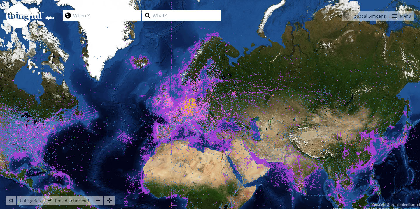 Le site Thingful vous permet de visualiser le fait que l’internet des objets est déjà une réalité, sans compter que de nombreux autres objets ne sont pas encore nécessairement géolocalisables ou bien que leurs utilisateurs refusent la géolocalisation.