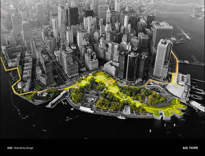 L’équipe de BIG vient de finaliser un projet de parc résilient autour de Manhattan intégrant les questions actuelles et futures de l’augmentation du niveau des mers. Globalement, cette question est prise au sérieux par toutes les villes et territoires dans le monde et est le constat concret du réchauffement climatique.