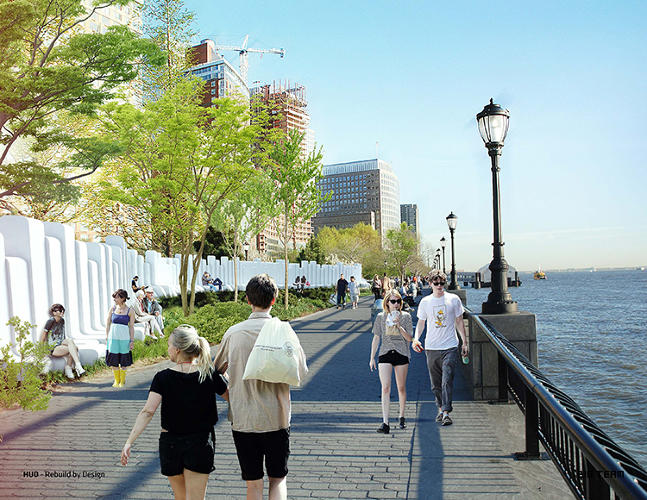 Le projet est relativement simple tout en étant très technique : aménager une « tranche » des quais en espaces essentiellement non bâtis mais intégrant des éléments de défense et d’absorption. Etonnement, ce projet me fait penser au Lower Manhattan Plan conçu en 1966 lors de l’élaboration du Masterplan des Twins et dont je vous parlais dans un Post en octobre 2013.