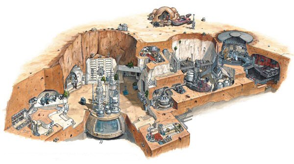 - le second est l’analogie qui m’a sauté aux yeux avec les fermes autonomes de Tatooine¨dans Stars Wars, tant dans le principe fonctionnel que de l’iconographie avec ses dômes.
