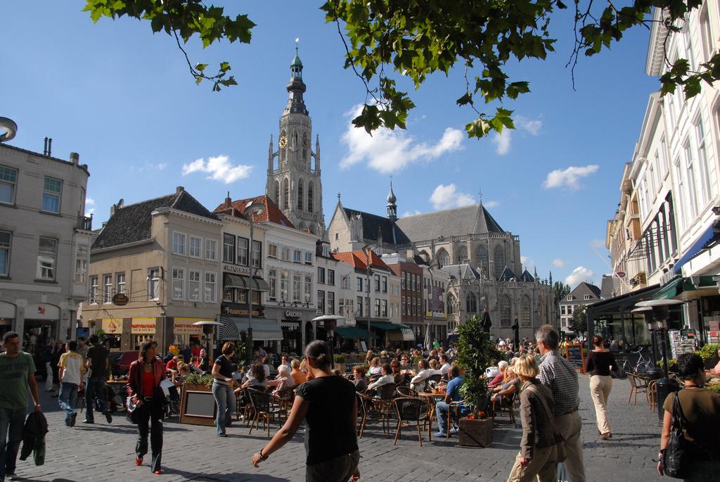 L’arrivée dans la ville qui se situe entre Anvers et Rotterdam est plutôt banale : une architecture à la hollandaise avec des immeubles hauts libérant des espaces verts au sol tels ceux construits en entrée de ville (dirk Hartostraat) ou plus anciens qui nous conduisent en centre-ville. Notons que cette ville n’est pas énorme et n’offre donc pas un service de transports en commun (bus) extraordinaire, mais des parkings en suffisance et coûteux (3,5€/h en moyenne). Par contre, on ne s’étonnera pas que la ville soit vélo frendly ! Nous sommes aux Pays-Bas…