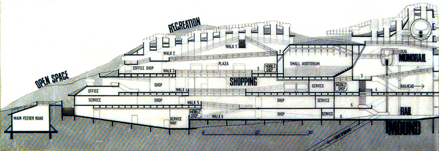 Conception spéculative pour la ville souterraine: magasins, divertissements et zone de transport.