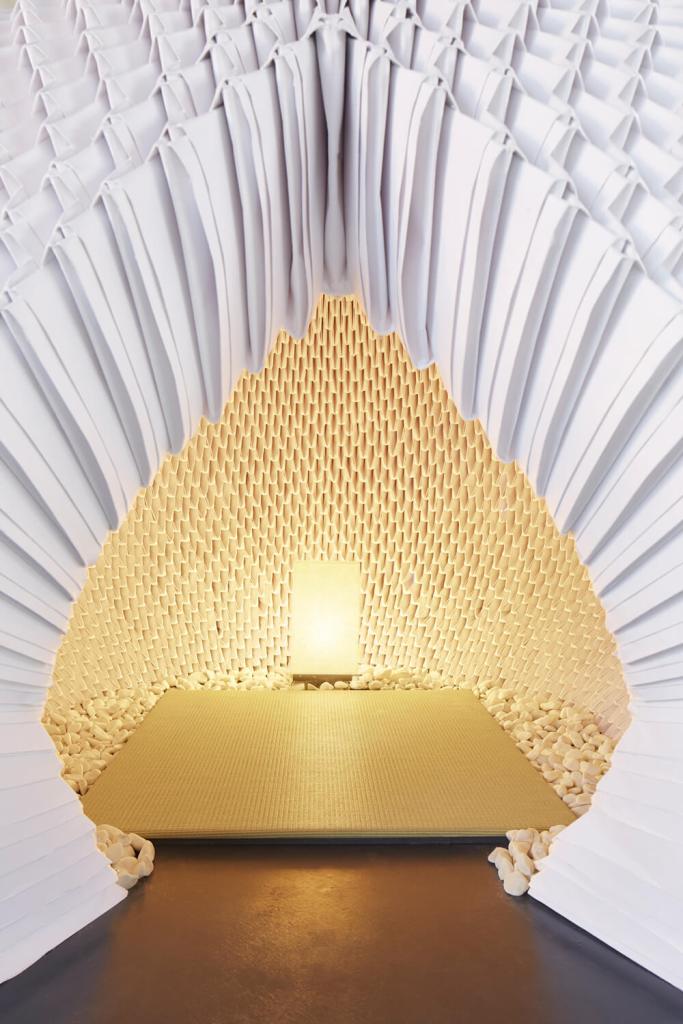 Pendant cette période quelque peu confuse et anxiogène, il faut aussi aimer se faire plaisir et, j’espère aussi vous faire plaisir en ce début d’octobre qui annonce l’automne au coin du feu.Je vous propose de découvrir une œuvre singulière du bureau d’architecture et de design Kad (Katagiri architecture+design) qui nous offre la beauté d’un moment de légèreté : une maison de thé en origami/papier. Ce bureau très « ligne claire » nous fait entrer dans un exercice de style qu’aucun ne s’amuserait à penser : créer de l’espace avec du papier. Pourtant, ils atteignent avec cette sensibilité le sublime qui ne peut que vous rendre de bonne humeur !
