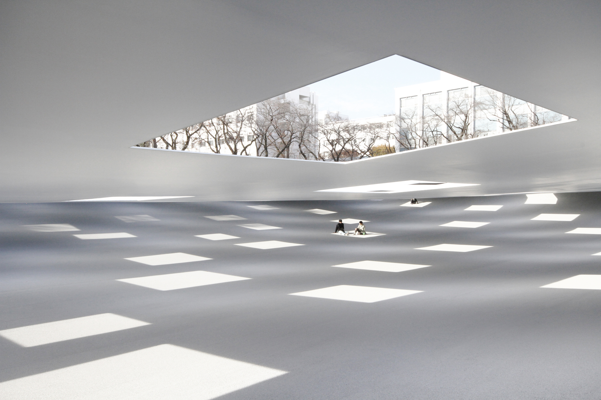 Le bureau d’architecture japonais dirigé par Junya Ishigami, est un bureau pleinement ancré dans le paradoxe japonais, conservateur de son histoire et regardant toujours vers l’avenir et sans a priori. Face à ce paradoxe, ce qui nous intéresse aujourd’hui est le lien entre les questions du paysage urbain d’un espace public et les enjeux définis pour atteindre la vision de l’architecte. Ce bureau avait étonné tout le monde en avec son Atelier de l’Institut de technologie de Kanagawa en banlieue Tokyoïte, un bâtiment rectangulaire enveloppé d’une fine feuille de verre suspendus par une forêt de poteaux ne délimitant pas l’espace mais permettant une flexibilité totale de l’espace. Treize ans plus tard, à côté de cette œuvre, les architectes viennent offrir un nouvel espace troublant à plus d’un titre : une Plaza-pavillon.