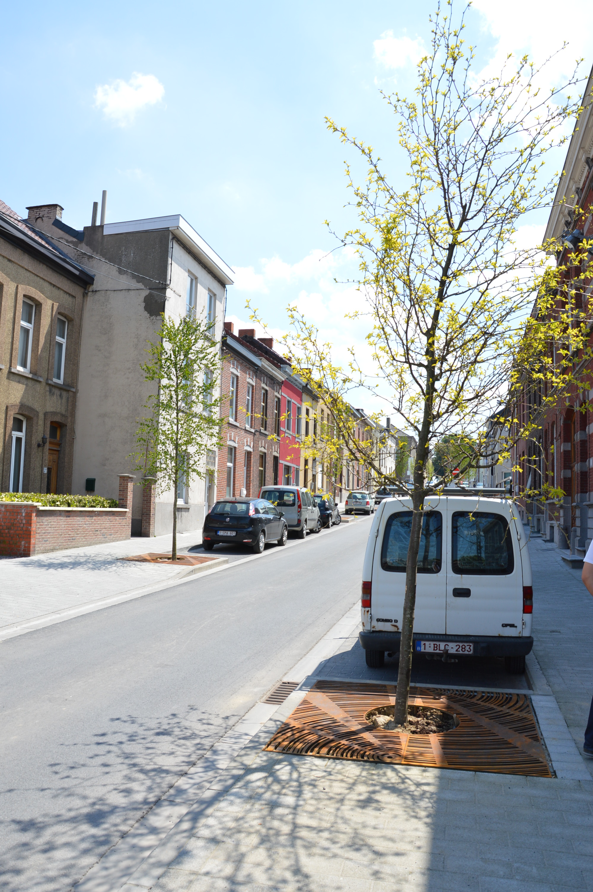 D’autre part, il n’est pas tout de remplacer une place de voiture par un arbre, car souvent sous les voitures il y a des impétrants. Ces câbles, canalisations, égouts, etc. parcourent nous villes et sont les reliquats de l’histoire de celles-ci depuis près de 150 ans. Le plus souvent, c’est le chaos qui règne à moins d’un mètre de vos pieds. Comme auteur de projet, nous nous sommes aventuré à réfléchir personnellement à la verdurisation de notre rue. Sur papier, c’était un cas idéal : 20 à 23 m de largeur, des trottoirs assez larges (selon les alignements), deux bandes de circulation très larges (3,5 m) et une bande de parkings. Toutefois, à l’analyse des localisations d’impétrants, seules les bandes de circulations étaient libres pour des plantations en pleine terre et assez profondes pour garantir la survie des plantations.