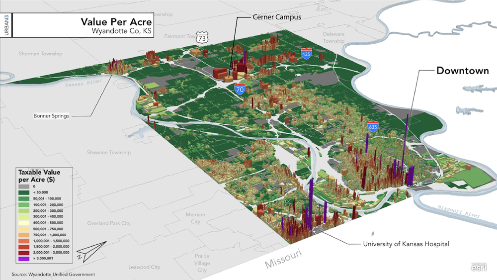 L’article présente le cas de la ville de Kansas City (Kansas) qui a investi massivement pour l’arrivée d’un campus privé de l’entreprise Cerner, holding financier (fonds de pension, etc.) spécialisé à l’échelle mondiale pour les transactions financières numériques et sécurisées (Flyware) comme dans la biogénétique. La capitale du Kansas, petite ville moyenne de 150.000 habitants (2019) éprouve les plus grandes difficultés à attirer des grands centres de décisions, outre l’ombre que lui fait sa grande sœur Kansas City du Missouri (480.000 habitants). La ville et l’État du Kansas a donc engagé des obligations pour financer la venue du groupe Cerner et à la clé l’espoir de 4.000 emplois directs et de nouvelles taxes sur la consommation, ce qu’on appelle les aménités indirectes. Sur papier, cette proposition aurait pu en faire rêver plus d’un, mais la pandémie et le retournement des usages de bureaux avec l’avènement généralisé du télétravail ont complètement transformé la situation au point que le holding a décidé de vendre son siège grâce aux nouvelles habitudes. Proximus fait de même à Bruxelles.