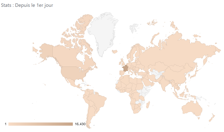 Toujours au sujet de quelques statistiques intéressantes, sachez que la grande partie des lecteurs sont belges, mais ne représentent que 41%. En deuxième position, la France (38%) puis les USA (6%). Si nous retrouvons au premier jour du lancement de notre blog (2011 transferts des articles de chez Posterous dédiés depuis 2008) nous avons couvert une quantité incroyable de pays/lecteurs. C’est là qu’on se rend compte que le monde est global, la connaissance aussi.