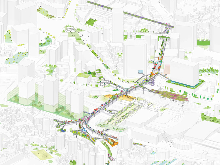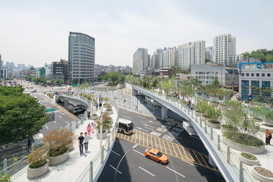 Des solutions de transformations des infrastructures existent déjà. Nous pourrions citer le Seoullo 7017 Skygarden de MVRDV en Corée du Sud (2017), l’incontournable High Line à New York … Ce que nous constatons de ces différents projets, c’est que la transformation de ces infrastructures s’accompagne toujours d’une plus-value foncière. On notera également que si le pont ne vient pas au sol, le sol peut venir au pont, tel que le suggère le Baumeester carolo l’a proposé à Décathlon et aux architectes de l’Atelier de l’arbre d’Or (Namur) pour la réalisation du Décathlon centre-ville à Charleroi, le long du Ring n°9.