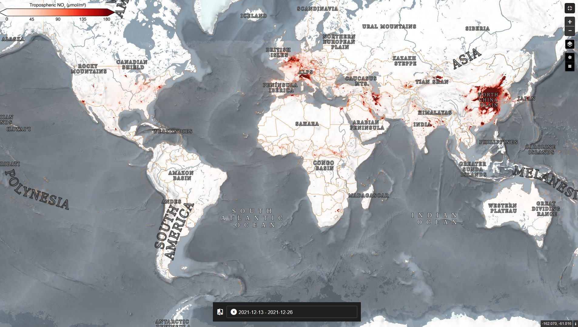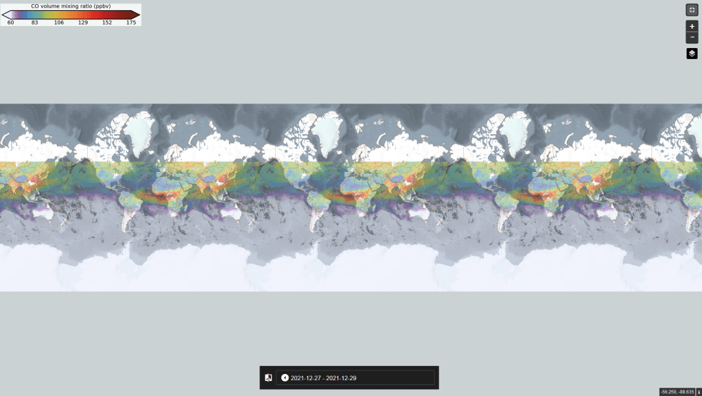 C’est ce que nous avons fait pour la pollution de l’air des territoires urbains de plusieurs continents. La base de données nous offre initialement des données satellitaires nous permettant de mesurer les NO2 (dioxyde d’azote) et CO. Le dioxyde d’azote est un puissant polluant issu essentiellement des activités humaines, particulièrement la mobilité et l’industrie, sans oublier le chauffage.