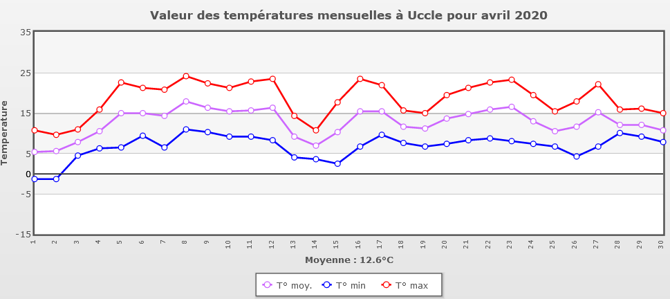 Les Nox mesurés montrent que la pollution a fortement été réduite en Europe (50% au lieu de 30% aux USA) couvrant le premier Lockdown. Est-ce pour autant que les Américains seraient moins sérieux que les Européens ? Probablement pas, cependant l’organisation urbaine est différente. D’une part leurs véhicules consomment en moyenne plus et les déplacements sont beaucoup plus long pour une même famille. Les types d’urbanisation nord-américaine et européenne ne sont plus à démontrer, mais dans des conditions exceptionnelles similaires, nous constatons que l’aménagement du territoire peut avoir un impact sur la pollution. Ensuite, il ne faudrait pas oublier les conditions climatiques européennes qui furent exceptionnellement ensoleillées en mars 2020 (161,9h pour une moyenne de 114h (source IRM, avril 2020) et un mois d’avril caractérisé par des températures et une isolation excédentaire : On retiendra de ce mois d’avril 2020 un mois très chaud et très ensoleillé aux précipitations très limitées. La sècheresse de l’air est tout aussi remarquable : avec une moyenne de 57%, c’est tout simplement la valeur record la plus faible mensuelle pour un mois d’avril, mais aussi presque tous mois confondus depuis 1833 (seul juillet 2018 aura fait mieux avec 54%) ! L’ancien record date d’avril 1893, avec une valeur de 59%. Quant à l’ensoleillement, avec 277.7 h, il vient en seconde position des mois d’avril depuis 1833, derrière le fameux mois d’avril 2007 (301 h). (IRM, mai 2020).