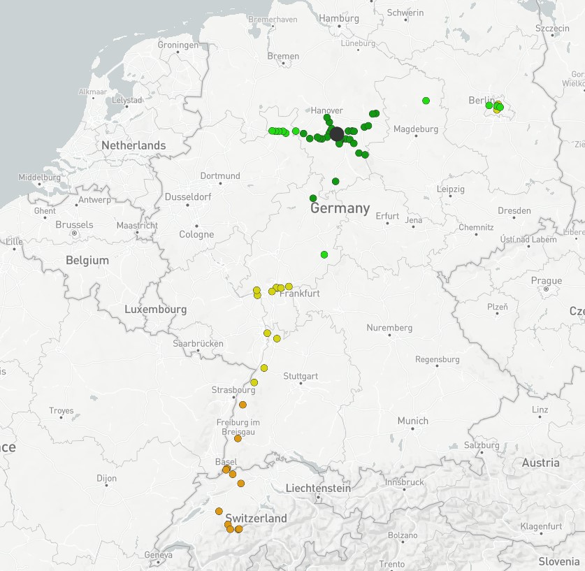 C’est le genre de métadonnées que nous adorons, car elles peuvent faire sens : le site Direkt.bahn.guru vous offre la possibilité de vérifier la distribution des gares à partir de votre gare habituelle.