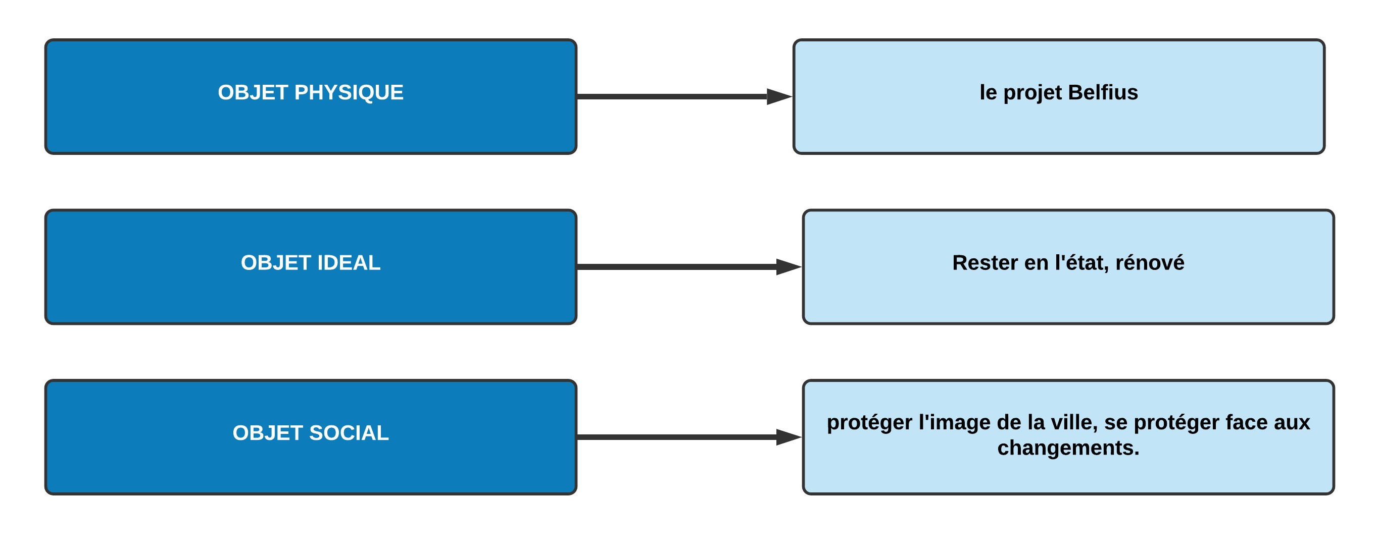 - Les objets physiques sont les objets existants tels qu’une place, une table ou un ordinateur. Ces objets sont présents physiquement ;