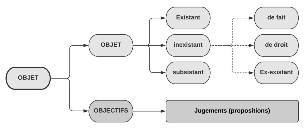 figure : Taxonomie des objets (vivants) définis par Alexius MEINONG et retranscrits par Ferraris, in tu es où, 2004, P 73