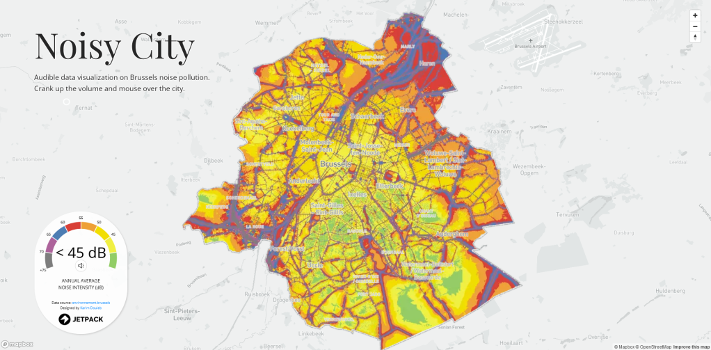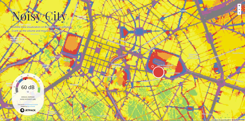 mots-clés : Noisy, city, brussels, visualization, noise pollution, jetpack, mapbox