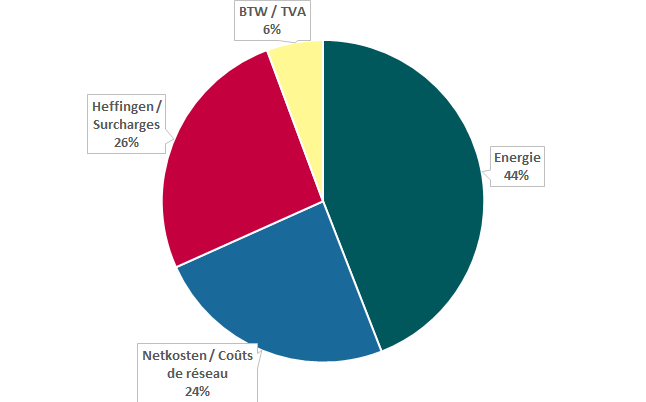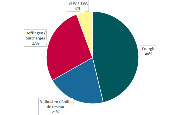 Les deux graphes issus de la CREG (Commission de régulation de l’électricité et du gaz) nous montrent que si la charge de réseau de distribution est de près de ¼ de votre facture, elle ne représente que 1/5 à Bruxelles et encore moins (18%) en Flandre. Il y a donc 6% de différence… les 6% qui auraient dû être investis dans les réseaux de distribution pour les maintenir au niveau requis pour supporter les changements en cours dans la distribution et production.