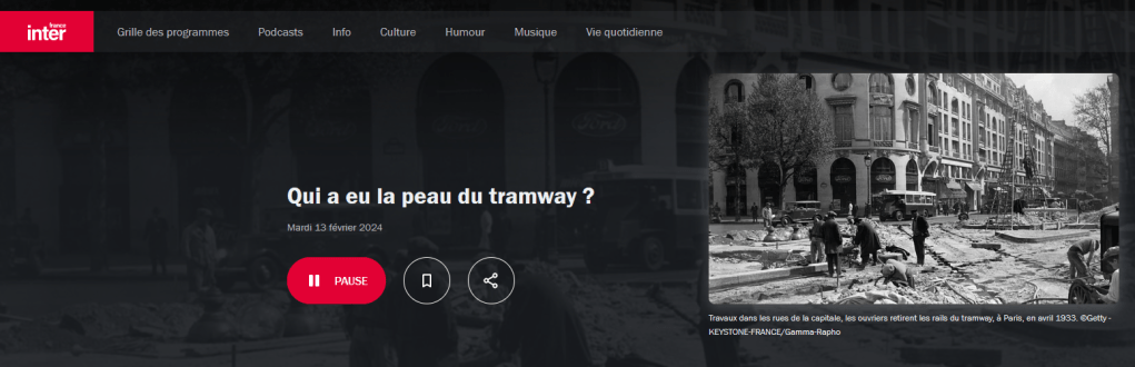 en lien l’émission : « qui a eu la peau du tramway?, Affaires sensibles, mardi 13 février 2024, France Inter