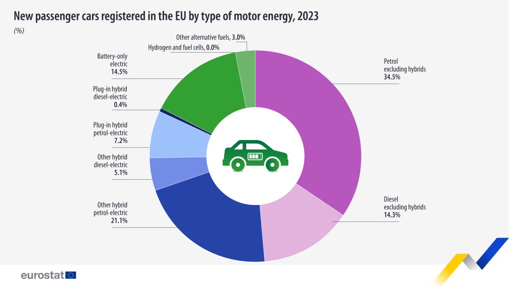 Or, la CSRD et double comptabilité est de plus en plus applicable aux grandes et petites entreprises. On ne parle pas ici de pollution, mais bien de financement des entreprises, des multinationales et des PME qui devront intégrer dans leurs mobilités diverses l’impact carbone dans leur bilan. Le carbone coûte de plus en plus cher… Il en résulte aujourd’hui une transformation globale du marché avec 48% des immatriculations en UE qui sont soit des VE, soit des véhicules hybrides (Hybrid & electric cars make up 48% of new registrations, Eurostat, 13 décembre 2024)