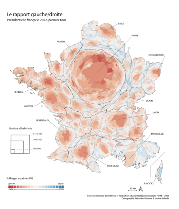 Le sujet est complexe et semble incompris par bon nombre de banlieusards, les débats actuels sur les réseaux sociaux le démontrent : le gouvernement wallon actuel est clairement « anti » urbain à l’opposé de la gauche, qui est naturellement ancrée dans les villes (y compris dans le reste de l’Europe cf. carte des votes en France ci-dessous). Face à cette nouvelle orientation politique, de nombreux habitants ruraux se réjouissent du financement d’une nouvelle salle communale, une nouvelle infrastructure sportive, etc., l’argument massue est « nous gérons bien, donc nous pouvons avoir notre part du gâteau ». Certes, mais qui gère quoi ?
