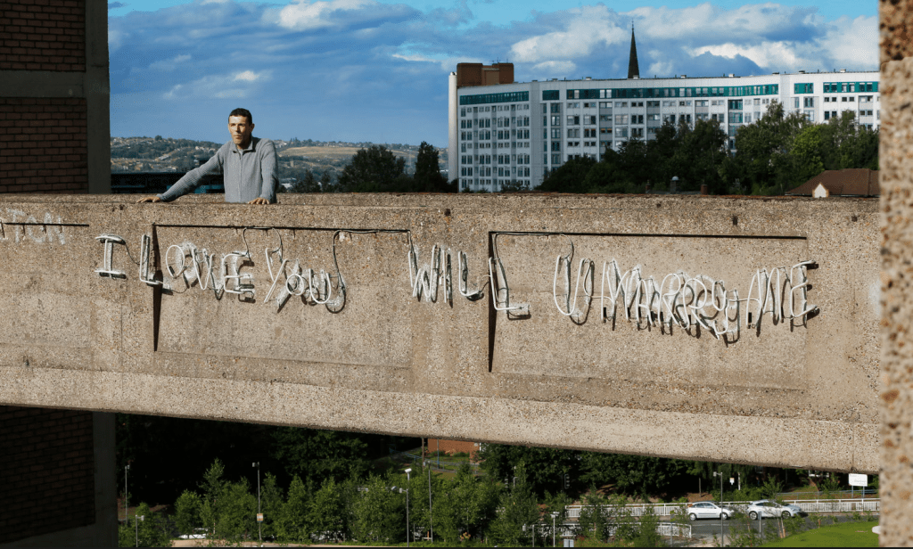 Un jour de printemps 2001, un homme de grande taille est entré dans les appartements de Park Hill à Sheffield et a emprunté une rue dans le ciel. Il est passé devant les flancs brutalistes, jusqu’à la passerelle. Il s’est dit : ça ira.